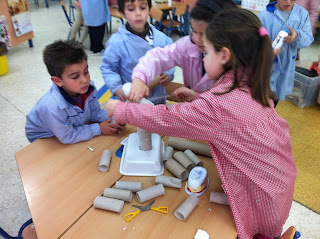 Y para ello, con material reciclado, MUCHA CREATIVIDAD, CARIÑO y en EQUIPO.....